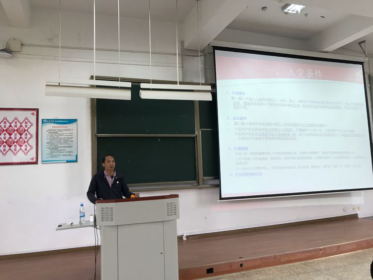 11月3日上午九点整,由贾斌老师为2019级入党申请人解读入党的条件和程序。贾斌老师首先介绍了入党的条件,着重强调“同学们应认真思考”,要充分做好入党准备;其次详细介绍了入党的程序(五个阶段)、需要的步骤(二十五个步骤)以及每个步骤容易出错的问题;再次介绍了入党申请阶段应注意的几个问题:第一,同学们需要进一步端正入党动机;第二,同学们要继续学习党的基本理论,提高对党的认识等;最后观看了入党申请介绍视频,让同学们更加清楚地了解入党的条件和程序。