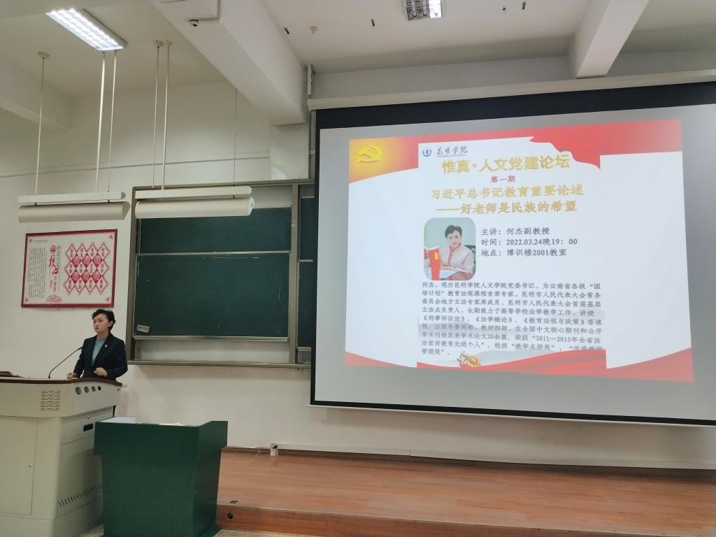 2022年3月24晚,威廉希尔中国官网“惟真·人文党建论坛”在博识楼2001教室正式启动,活动邀请公司党委书记何杰作了题为“习近平总书记教育重要论述——好老师是民族的希望”专题讲座。