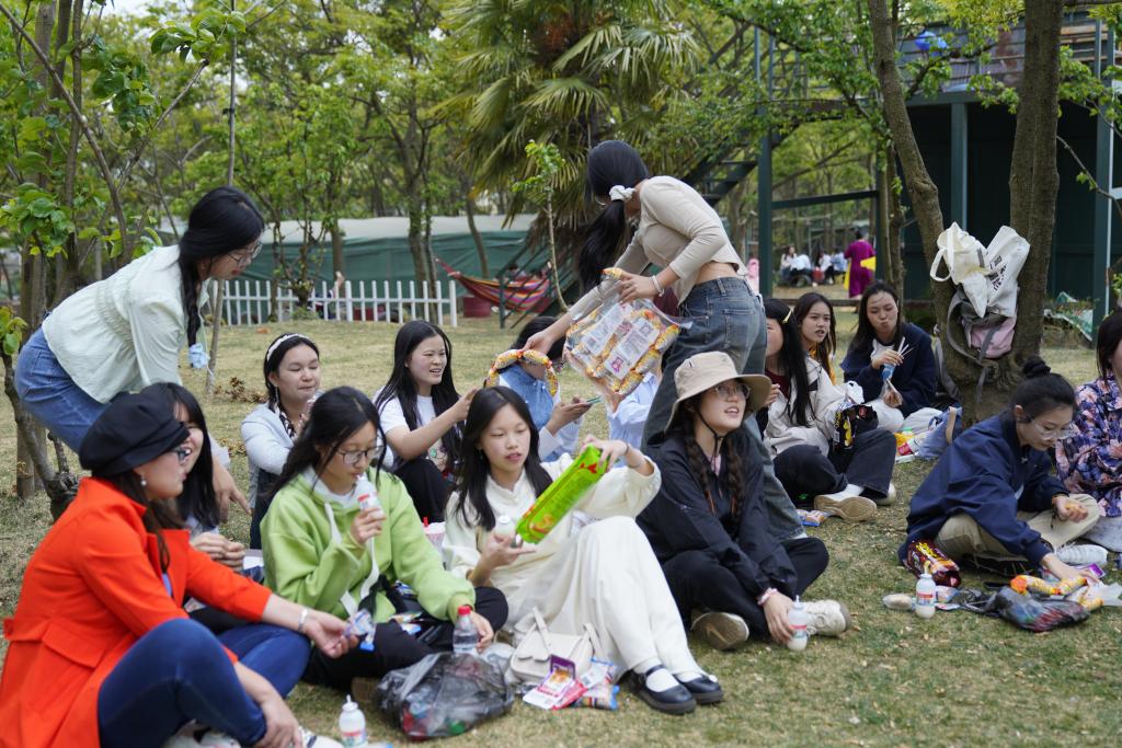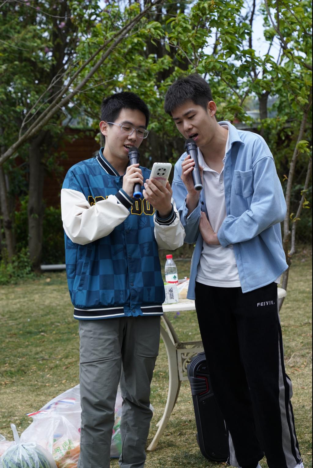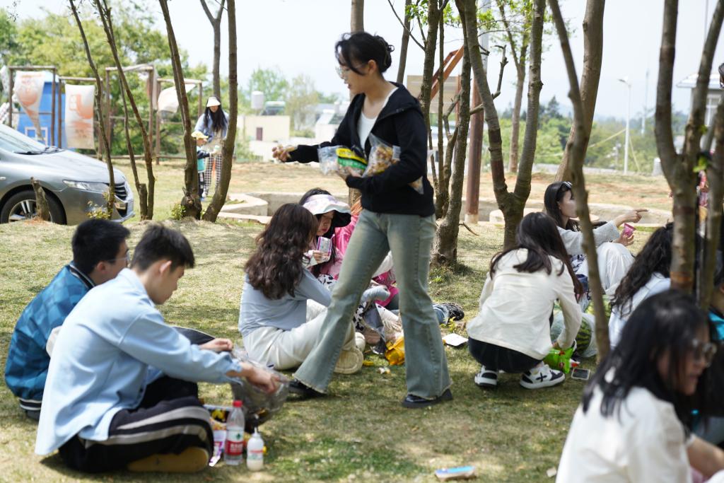 到达目的地后,同学们便自由参观起来,三两一群,五六一组,邀约着朋友,或荡秋千,或赏花拍照,或观赏羊群,玩得不亦乐乎。随后是欢乐的集体活动,我们在草地上举办了一个小型的音乐会。先将同学们进行分组,然后两个小组轮流表演才艺,输的小组要接受相应的惩罚。两个小组pk结束之后,同学们一起唱响喜欢的歌曲,让欢歌回荡在春天的空气中,这也给了我们一个为彼此喝彩的机会。