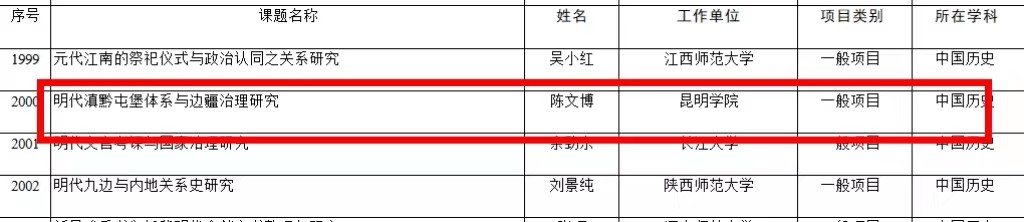近日,全国哲学社会科学工作办公室公示了2023年国家社科基金年度立项名单。威廉希尔中国官网陈文博博士申报的一般项目《明代滇黔屯堡体系与边疆治理研究》获批立项。