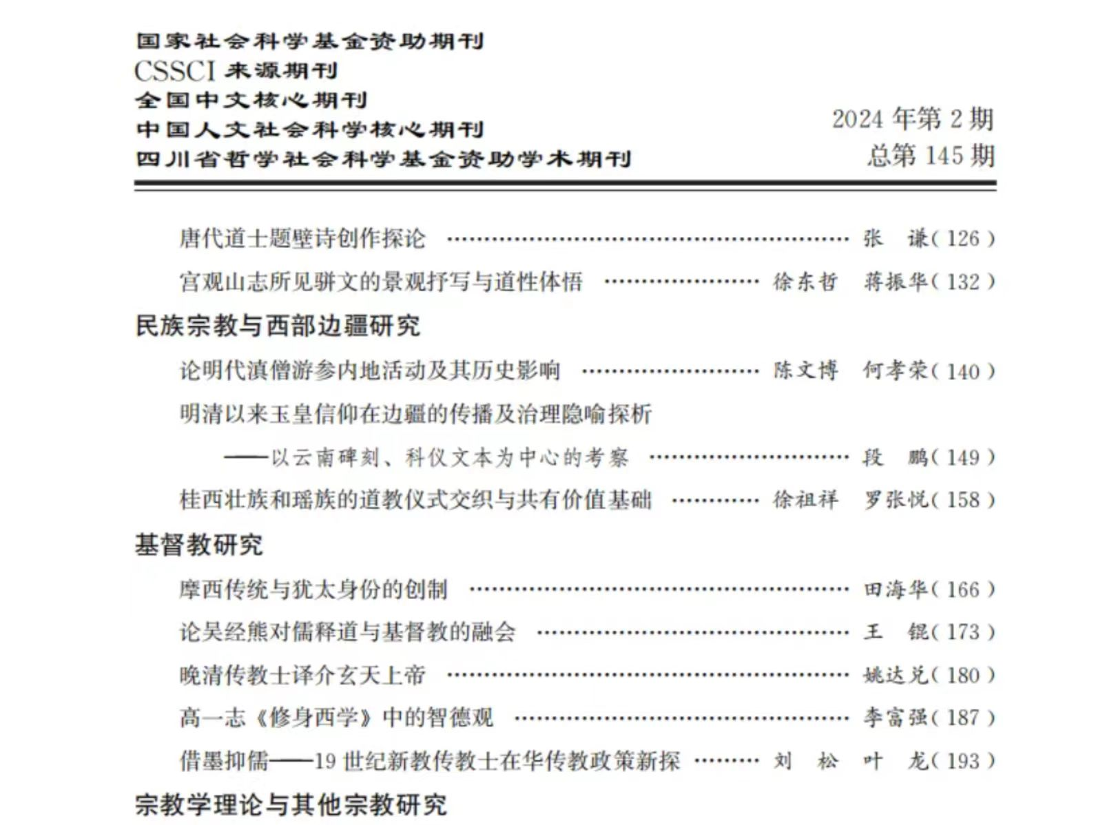 公司陈文博老师题为《论明代滇僧游参内地活动及其历史影响》的学术论文,被刊录发表于宗教学权威刊物(国家社科基金资助期刊、中文社会科学引文索引CSSCI来源期刊、全国中文核心期刊、中国人文社会科学期刊AMI综合评价核心期刊)《宗教学研究》2024年第2期。公司全体同仁对陈文博老师表示热烈祝贺。