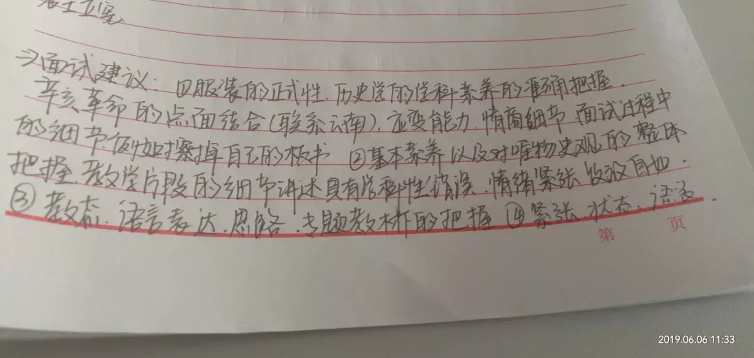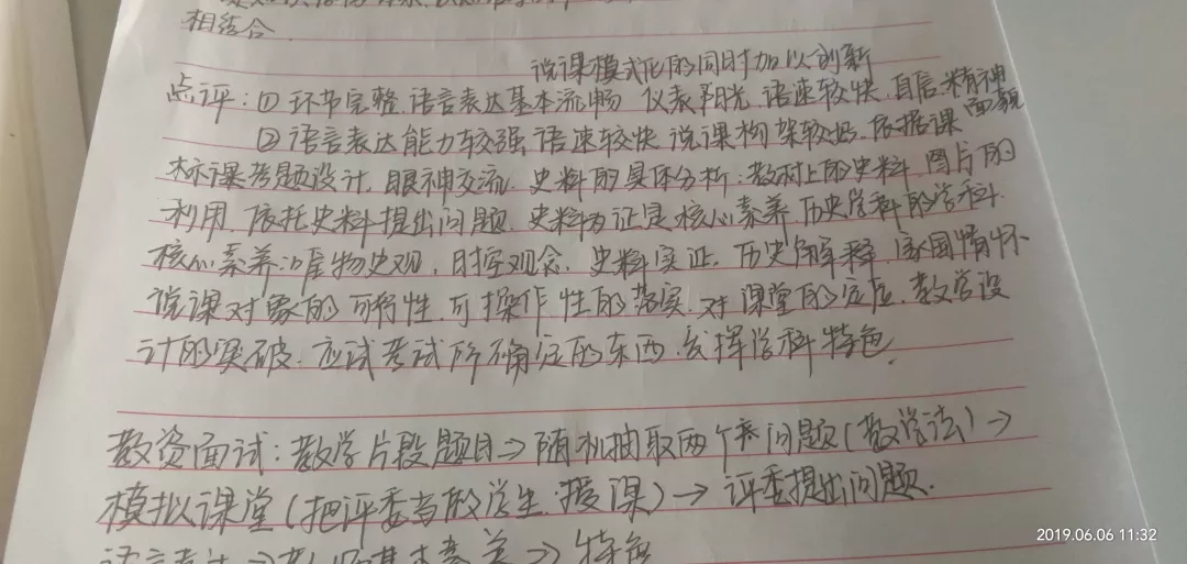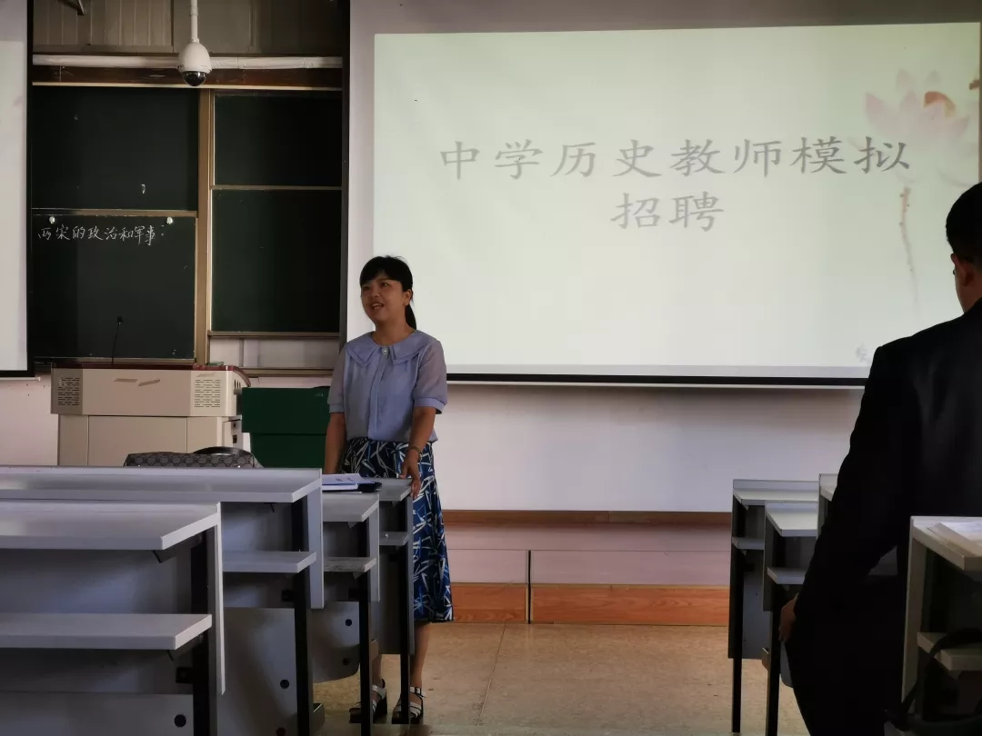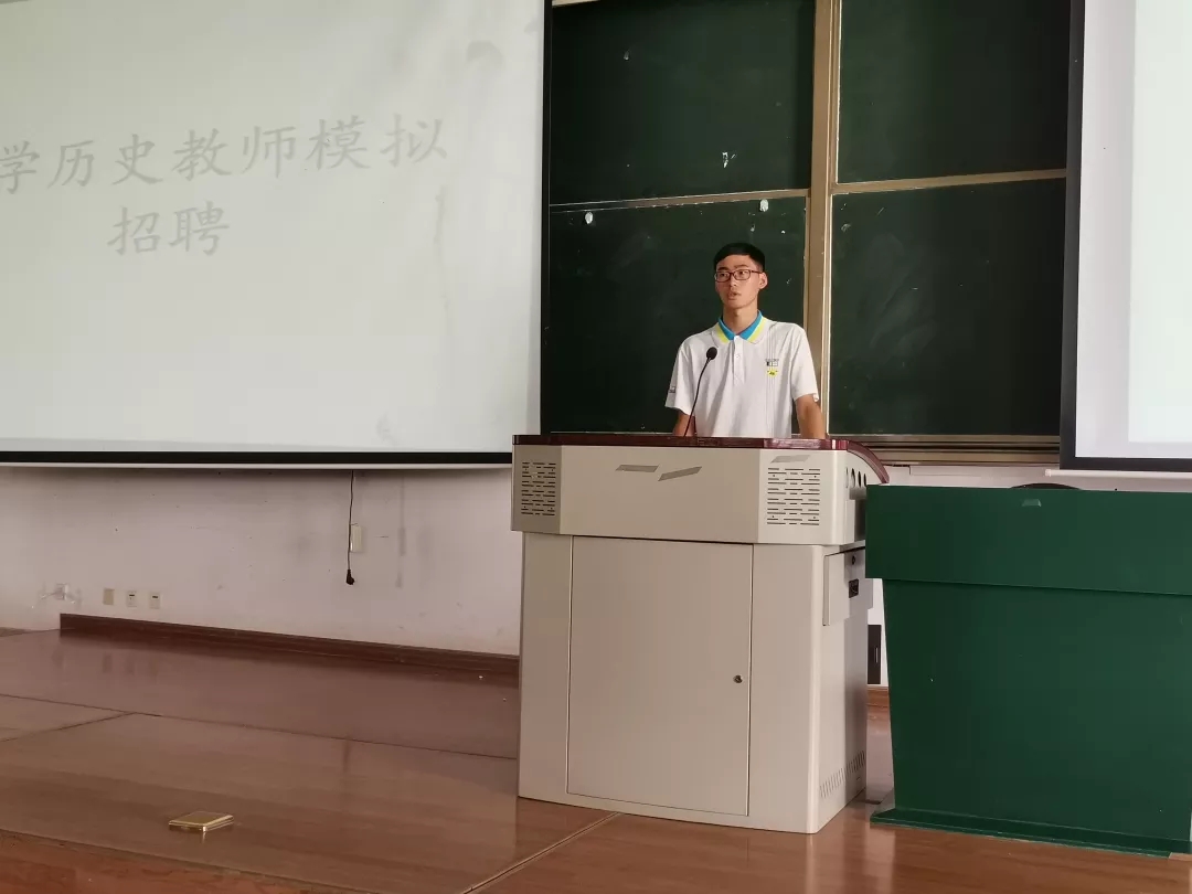 总而言之,通过这次模拟招聘,我们发现了自身的不足,懂的了只有掌握了扎实的专业知识,在实践运用中才不会手足无措、无从下手。这次活动的真实演练,让我们思索了很多以前没有考虑过,甚至没有意识到的问题,"八分钟的片段教学,讲个笑话,分享一首有关历史的歌曲"等等,除了这些,相信还有很多类似这样有关历史学科核心素养的问题。我们深深认识到,在以后的学习生活中应该注意实践,避免眼高手低、三分钟热度。这次模拟面试,周老师独到的精辟的见解,让我们再一次对自己进行了深入认知。相信这次活动,对同学们清楚自己未来的发展方向和探索空间都有着重大的意义。