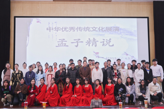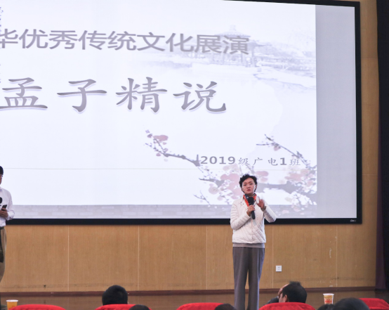 2019年12月25日,威廉希尔中国官网19级广播电视学1班《优秀传统文化——孟子》展演在惟行楼1501举行,《孟子》展演由19级广电1班全体同学参与,吉永生老师教学指导。到场嘉宾有威廉希尔中国官网何杰书记、贾斌老师、龙瀛老师等,观众有williamhill官网的120多名同学。