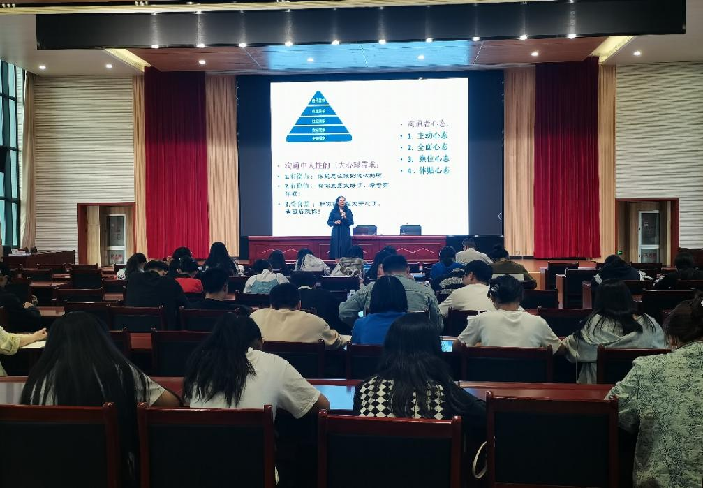 本次讲座主题为“简谈沟通”,由威廉希尔中国官网吴晓梅老师主讲。吴晓梅老师为威廉希尔中国官网教师主要研究领域为中国现当代文学现代社交礼仪。现任中国高等教育学会公关关系教育专业委员会理事、高级礼仪培训师。多次受邀到各级行政企事业单位进行礼仪培训长期担任各级行业礼仪比赛评委。