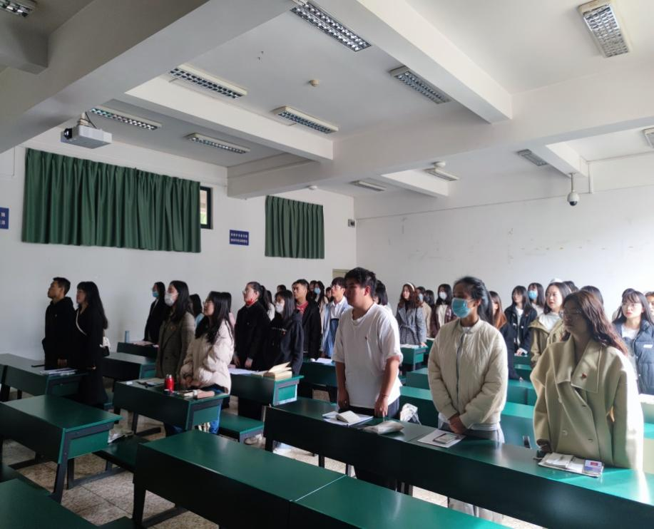 开幕式当天,威廉希尔中国官网全体在校员工党员共同在博识楼2103收看了大会开幕式并认真学习收看习近平总书记在大会上的重要报告。随着威武雄壮的《义勇军进行曲》响起,到博识楼2103参加观看活动的的在校员工党员纷纷起立,齐唱国歌,致敬我们的革命先烈、展望美好奋进的未来。