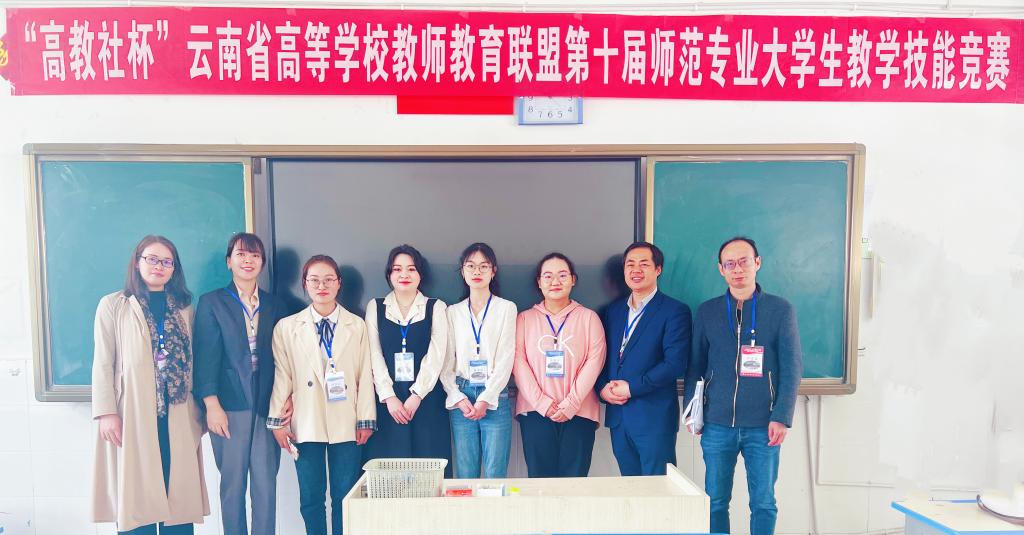 由云南省高等公司教师教育联盟主办,滇西科技师范公司承办的“高教社杯”云南省高等公司教师教育联盟第十届师范专业老员工教学技能竞赛决赛于3月31日在滇西科技师范公司落下帷幕,威廉希尔中国官网共计斩获一等奖1项,二等奖3项,三等奖4项,优秀奖1项。