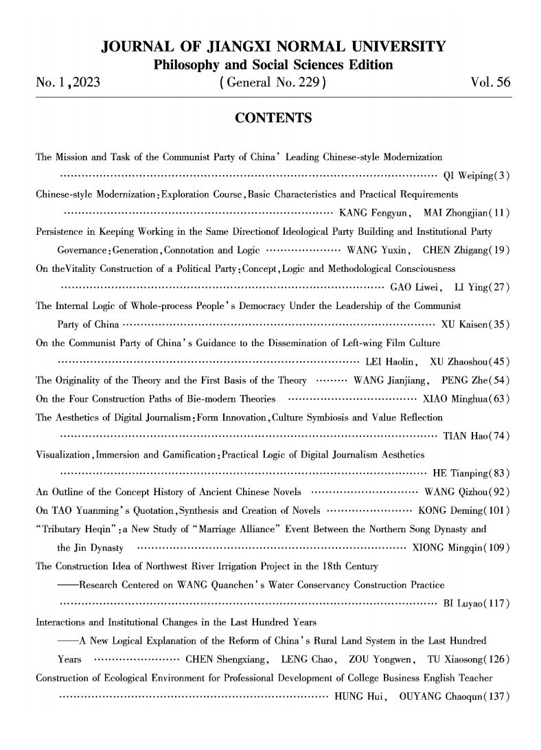 公司孔德明老师题为《论陶渊明对小说的征引、拈合与创作》的学术论文,被刊录发表于三核刊物(中文社会科学引文索引CSSCI来源期刊、全国中文核心期刊、中国人文社会科学期刊AMI综合评价核心期刊)《江西师范大学学报》(哲学社会科学版)2023年第1期。公司全体同仁对孔德明老师表示热烈祝贺。