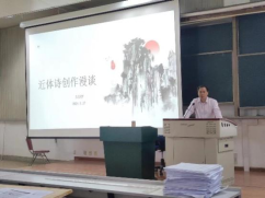 关于近体诗创作,朱教授提到几点值得思考的问题:文体创作还是文体消费?诗家语与打油诗谁更胜一筹?谨声律还是以意胜?现在我们作诗不再似古人为求取功名,作诗的意图也就更加简单了。朱教授认为,作诗者不应拘泥于文体形式,要注重内容与情感表达,不让格律平仄成为镣铐,而重在表达诗的意境。