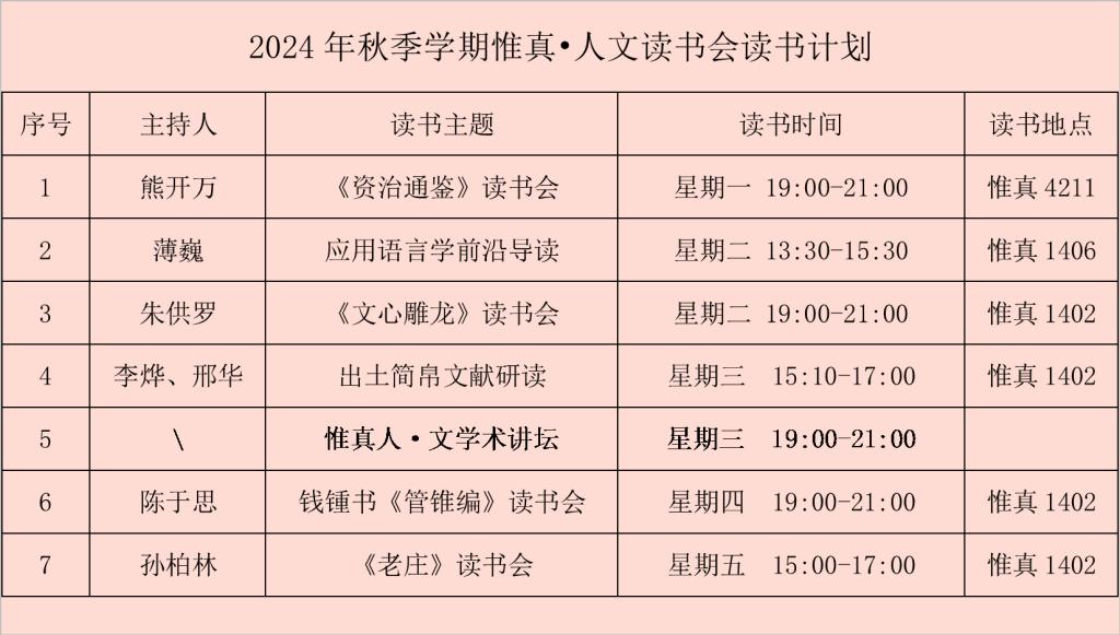 2024年秋季学期读书计划