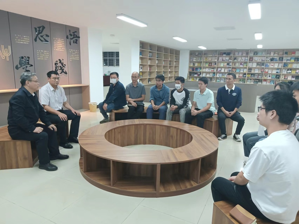 首先同学们分别自我介绍。王副书记询问了与会同学的学习、生活情况,公司22级本科班员工耿羽含、卯升尧,22级研究生袁华龙、陈泽羽,23级研究生朱潇玉发言。5名同学主要从学习方法、同学交往、研究生科研、公司南门口交通安全等多方面谈感受、说困惑、讲认识、提建议,畅所欲言,王副书记一一耐心倾听,一一回应,场面暖心融洽。同学们在发言中还表达了公司和公司对同学们的关心、帮助的认同感,认为公司和公司提供了良好的学习环境,辅导员、班主任、教师都认真负责,学习、生活收货很大。