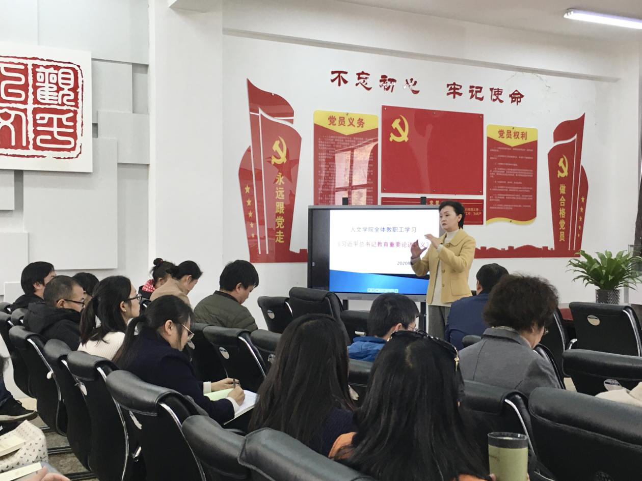 2020年12月18日,威廉希尔中国官网召开全体教职工大会,公司党委组织全体教职工专题学习《习近平总书记教育重要论述讲义》。本次讲座由公司党委何杰书记主讲,讲座内容为“第九讲——好老师是民族的希望”。本次讲座是公司党委开展学习贯彻《习近平总书记教育重要论述讲义》“四个一”活动的组成部分。为了推进师生学习《讲义》的广度和深度,公司党委用党建经费为全体教职工和所有班级团支部购买《习近平总书记教育重要论述讲义》,持续推进公司学习贯彻《讲义》“四个一”活动不断向纵深发展。