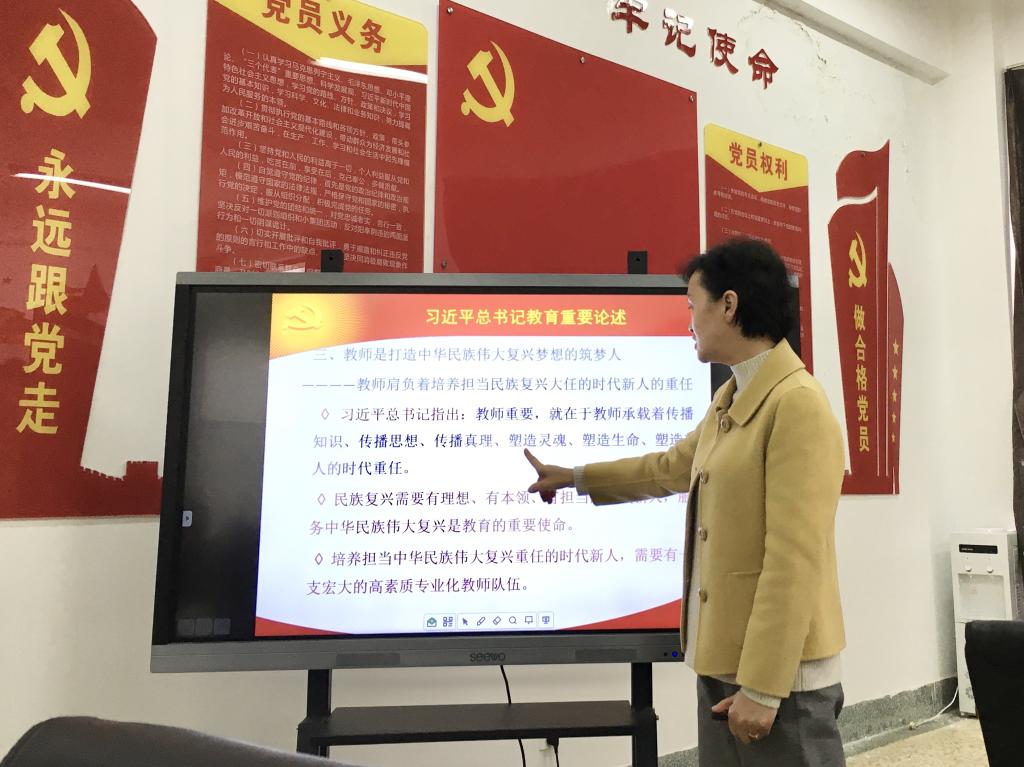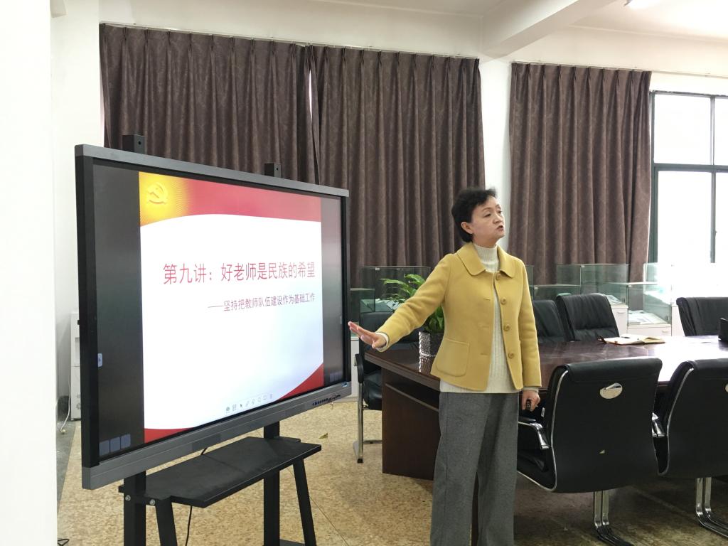 何杰书记用了两个多小时的时间边领学书中的原文内容边结合身边事例进行讲解,为威廉希尔中国官网全体教师上了一堂生动的师德师风教育课程。听课的部分老师表示:“从教几十年,也许从来没有认真思考过自己为何选择教师这个职业,如何才能成为“四有”好老师。今天,通过何杰书记的这一堂师德师风课、思想政治教育课、交心谈心课,公司每位教师都会有所思考和感悟。