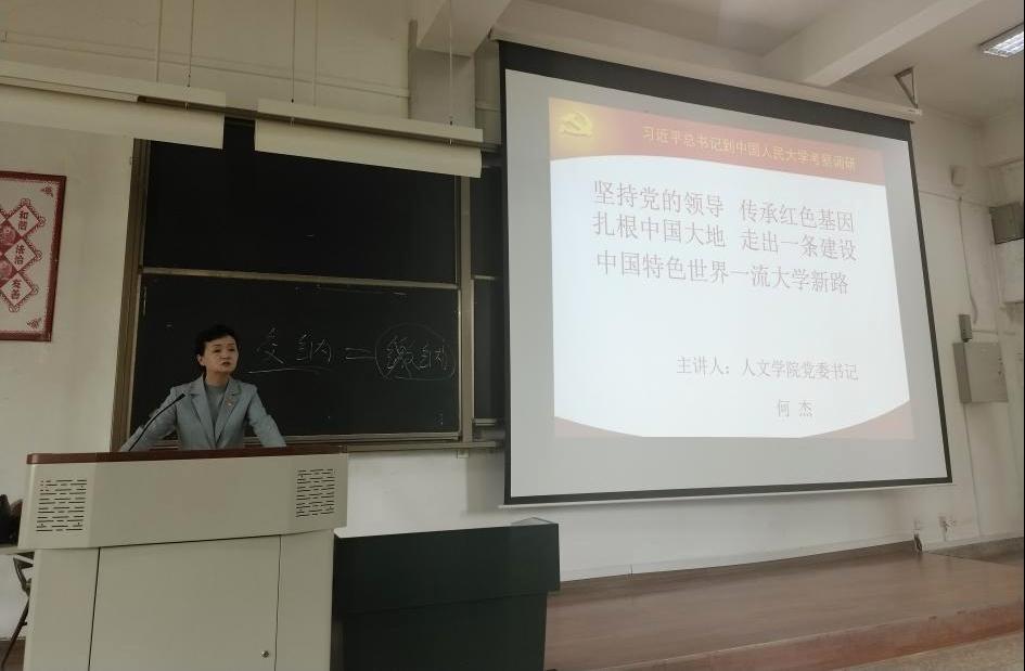 56中午本次入党积极分子、发展对象集中培训开班,人文公司党委何杰书记结合习近平总书记考察中国人民大学时发表讲话的精神开展题为《坚持党的领导,传承红色基因,扎根中国大地,走出一条建设中国特色世界一流大学新路》的专题辅导2022年4月25日, 在五四青年节即将到来之际,中共中央总书记、国家主席、中央军委主席习近平到中国人民大学考察调研希望全国广大青年牢记党的教诲,立志民族复兴,不负韶华,不负时代,不负人民何书记从“扎根中国大地办大学:让党放心,不负人民”“大课程:‘思政课的本质是讲道理’”“大命题:回答时代之题,彰显中国之理”“大先生:‘经师’和‘人师’相统一”“大熔炉:勇当开路先锋,争当事业闯将”五个主题为大家上了一堂精彩的“思政课”。指明当代青年建功立业的舞台空前广阔、梦想成真的前景空前光明,希望大家努力在实现中国梦的伟大实践中创造自己的精彩人生。