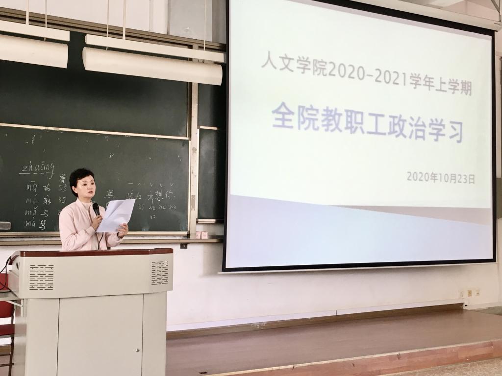 2020年10月23日下午,威廉希尔中国官网全体教职工在博识楼1001教室开展关于《云南省贯彻落实加快构建高校思想政治工作体系意见的任务分工方案》的学习。何杰书记领学了文件内容并结合威廉希尔中国官网特点对相关内容做了进一步阐述。