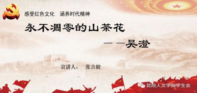 公司2019级历史学一班张吉姣同学作为主讲人之一,以“永不凋零的山茶花”为主题,向附属经开公司初二年级的同学们讲述了云南第一位女共产党员、williamhill官网员工吴澄烈士为祖国的革命事业抛头颅、洒热血的革命生涯。号召同学们学习吴澄烈士的爱国主义精神,真正把爱国之志变成报国之行。宣讲结束后,同学们被吴澄烈士反帝反封建的革命事迹和爱国情怀所感动,纷纷表示获益匪浅,收获良多,要在今后的学习生活中积极弘扬吴澄烈士的爱国主义精神。