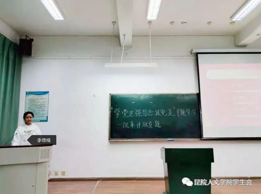 在“改革开放”的学习中,李德楠同学主要从改革开放的历史进程、辉煌成就、经验启示三个方面展开宣讲。首先,李德楠同学从改革开放的五个阶段介绍出发展的历史进程,并从中国经济、社会主义民主政治、文化建设、人民生活水平以及国际影响力几个方面展示出改革开放的辉煌成就。接下来,李德楠同学总结了改革开放对社会主义经济建设的经验启示,认为要不断解放思想,推进理论创新;坚持市场化改革方向,先行先试、先易后难,统筹兼顾、协调推进;要正确处理改革、发展、稳定的关系。最后,李德楠同学肯定了“改革是为了人民、依靠人民,改革成果由人民共享”的历史启示。