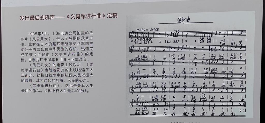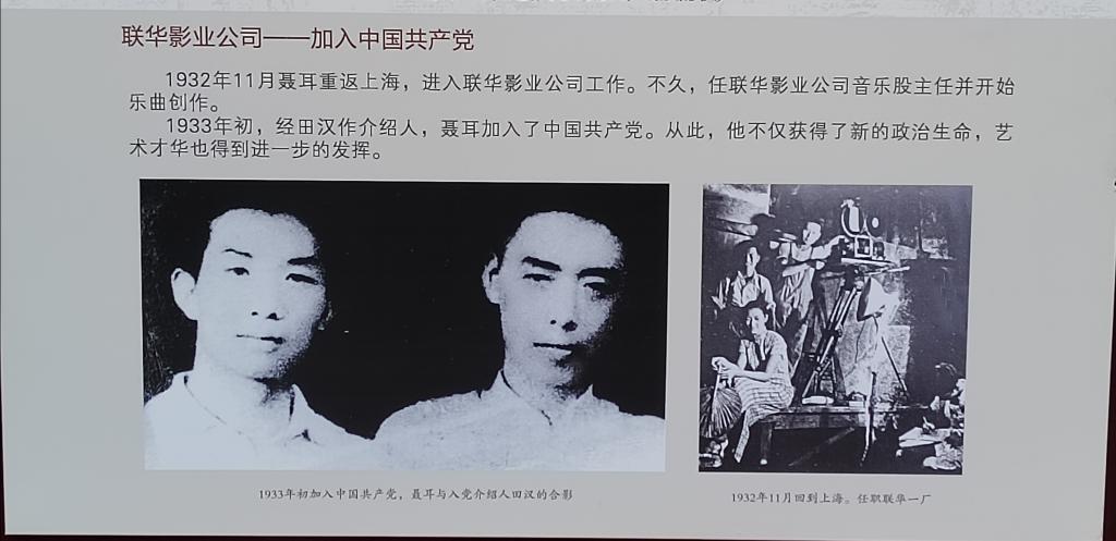 聂耳先生用自己的方式表达了对民族抗战的最大支持——音乐,声音的怒吼。在省立第一师范公司学习时,聂耳先生的学习内容就包括了钢琴的乐器,更因为受其母亲(傣族,知悉民间民俗音乐)的影响,陆陆续续参加中共地下党组织的活动演出;到1931年,聂耳先生19岁成为上海明月歌舞剧社小提琴手,开启艺术生涯,为后来国歌曲谱的创作奠定基础。也是在1933年,聂耳先生正式加入了中国共产党,获得了新的政治生命。