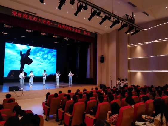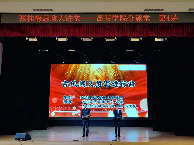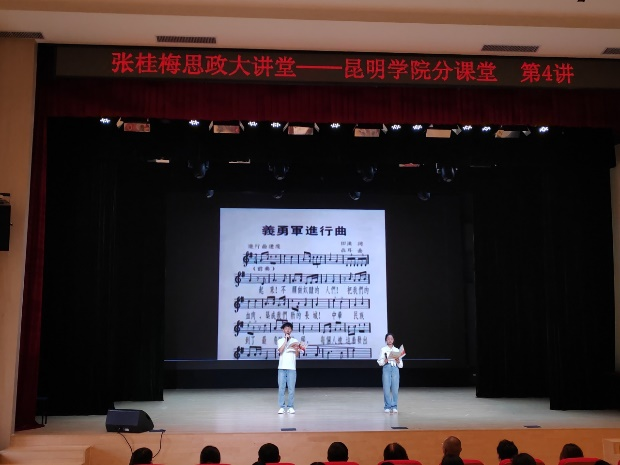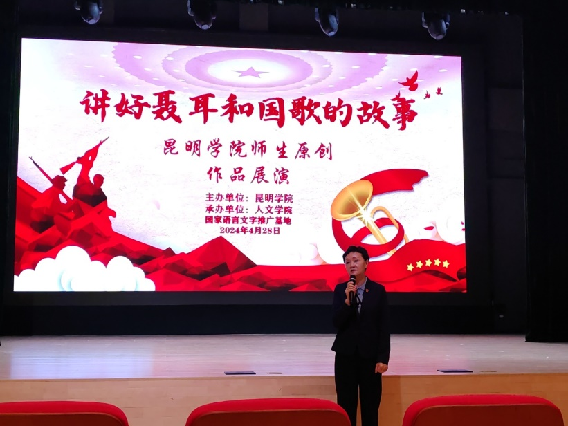 为主动“讲好聂耳和国歌的故事”,弘扬国歌精神,4月28日下午由williamhill官网主办,威廉希尔中国官网、国家语言文字推广基地承办的张桂梅思政大讲堂——williamhill官网分课堂第4讲“聂耳和国歌的故事”威廉希尔中国官网师生原创作品展演在音舞演播厅举行。