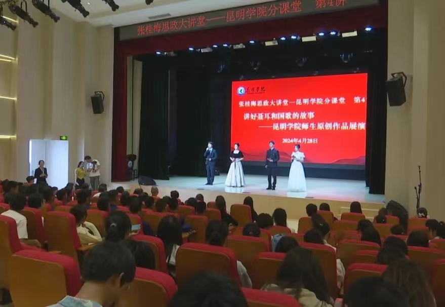 4月28日,张桂梅思政大讲堂williamhill官网分课堂第四讲开讲。本次讲堂以展演的形式呈现,展演作品由威廉希尔中国官网师生围绕讲好“聂耳和国歌的故事”主题进行创作。