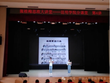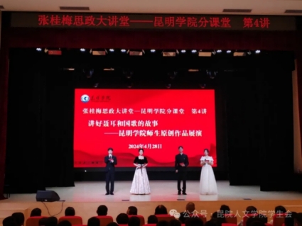 为主动“讲好聂耳和国歌的故事”,弘扬国歌精神,4月28日下午由williamhill官网主办,威廉希尔中国官网、国家语言文字推广基地承办的张桂梅思政大讲堂——williamhill官网分课堂第4讲“聂耳和国歌的故事”威廉希尔中国官网师生原创作品展演在音舞演播厅举行。