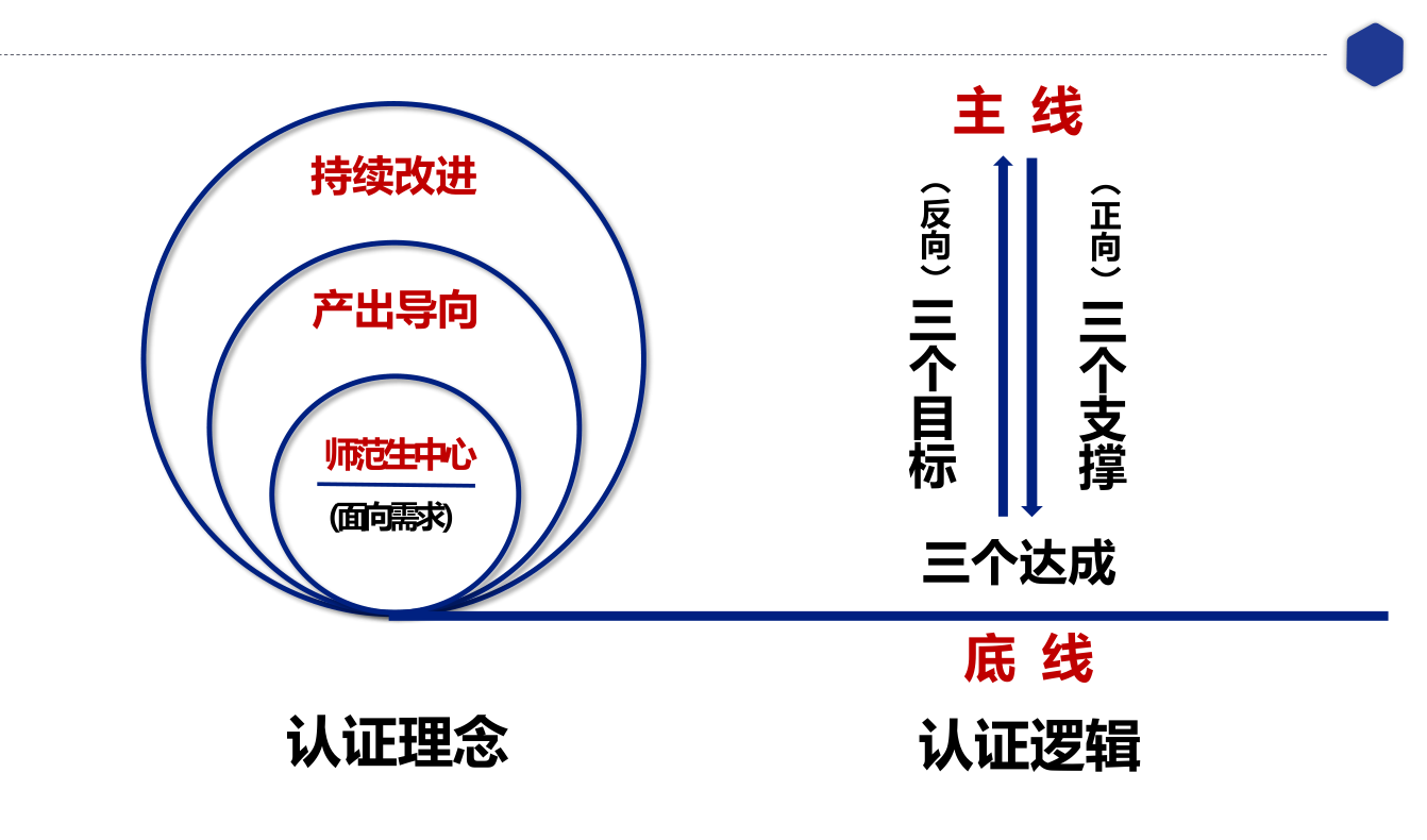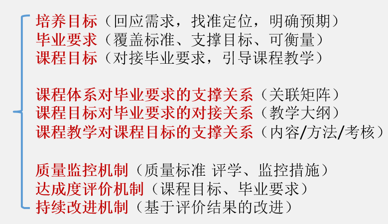 认证主线:三个目标:培养目标、毕业要求、课程目标(反向设计)
