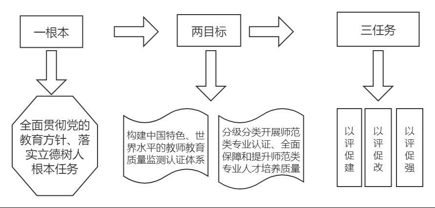 两目标:构建中国特色、世界水平的教师教育质量监测认证体系;分级分类开展师范类专业认证。