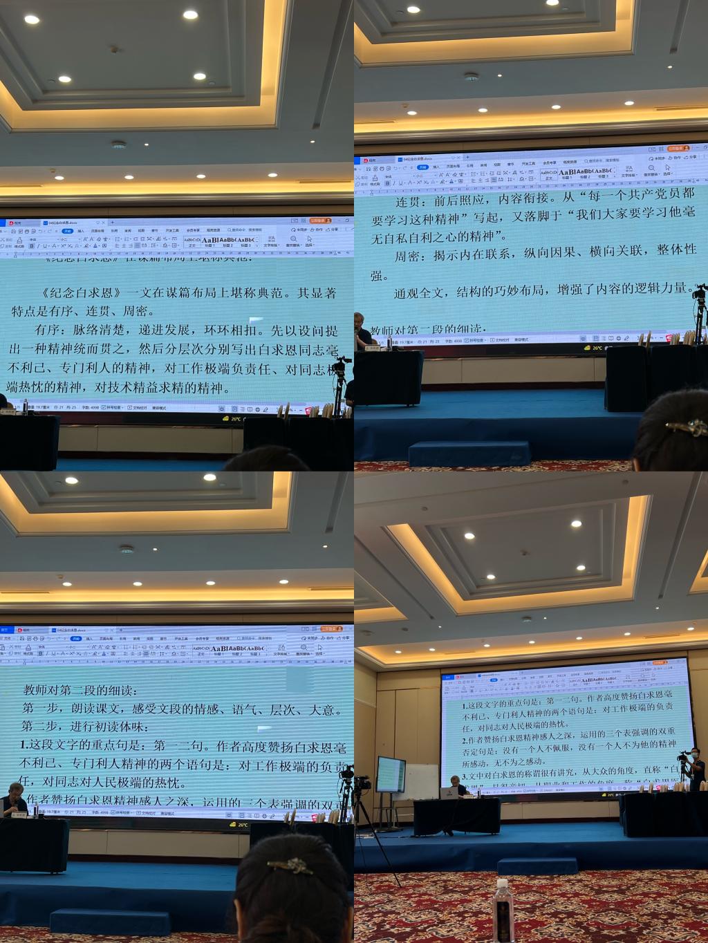 下午,4位学员分别说课《纪念白求恩》《老山界》《我为什么而活着》《中国人失掉自信力了吗》4篇课文。余老师对这四节说课进行了中肯的点评。既肯定了在昨天学习的基础上逐步掌握了“板块教学”,也对他们的整体构思和细节优化提出了指导意见。