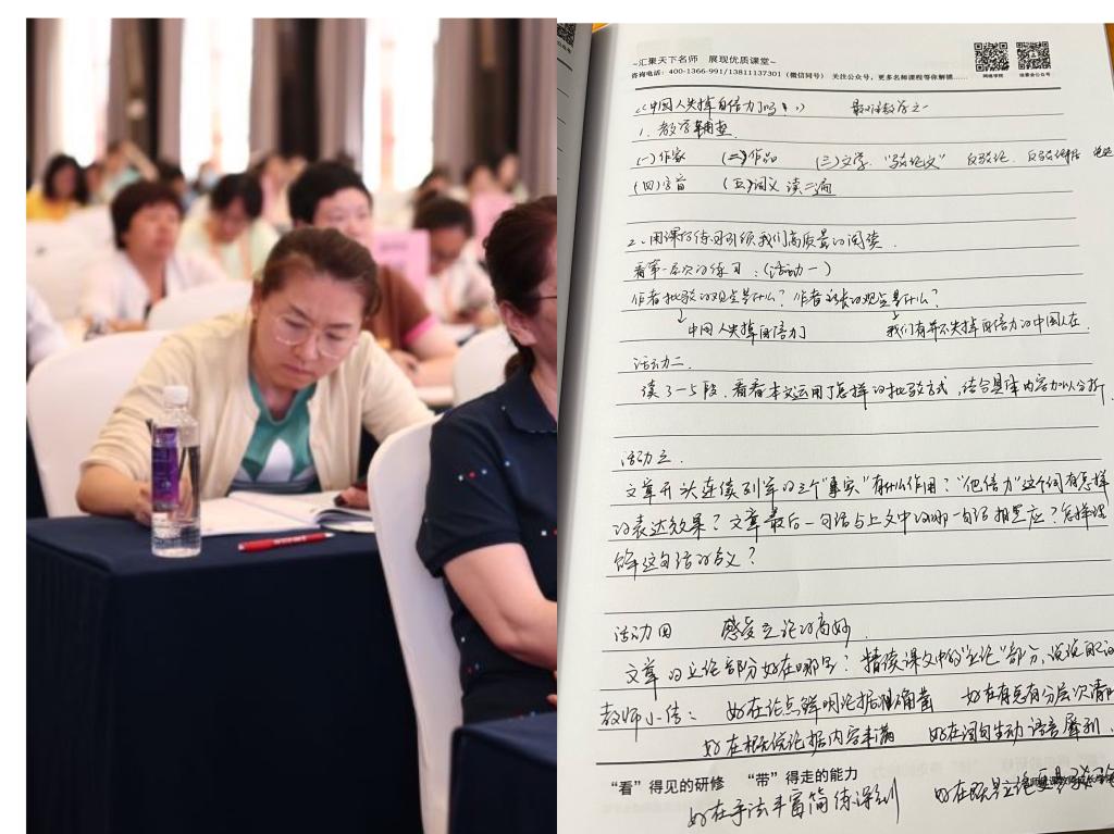 他还在每一个理论提出后列举了很多实例让学员有迹可循。让理论和实践结合完美,做到“知行合一”。昨天执教了《春》,今天还分享了《春》丰富的教学资源、美妙的章法以及新的教学设想。大家认识到课文研读能力是语文教师的半壁江山,任何一篇课文都是教学之宝。