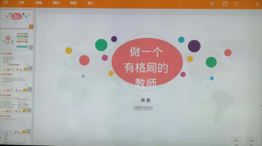 收假回来,杨丽老师给全体教师上了一堂课——如何做一个有格局的教师,在这堂课上主要讲述的是要用不同的角度去看待教育,思考教育,以多变的方法来应对员工,用认真的态度去对待工作,以勤奋的行为来收获成功。这堂课,讲出了教师的实质,工作的艰辛。在教育的这条路上任重而道远。