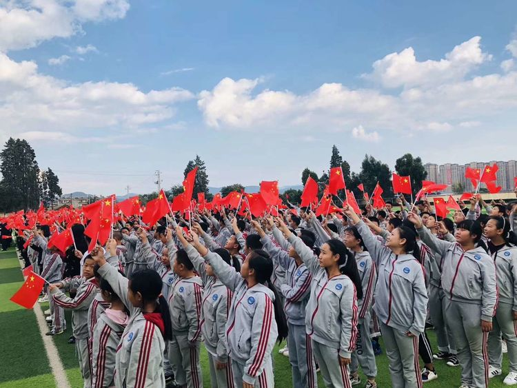 实习生活的这一个月里面,最重要的一次活动就是迎国庆70周年,全校老师着正装,员工集体校服,人人手中高举鲜艳的国旗,全校响亮的唱出“歌唱祖国”,之后公司老师的慷慨激昂的朗诵,一时间全体师生都激动万分。