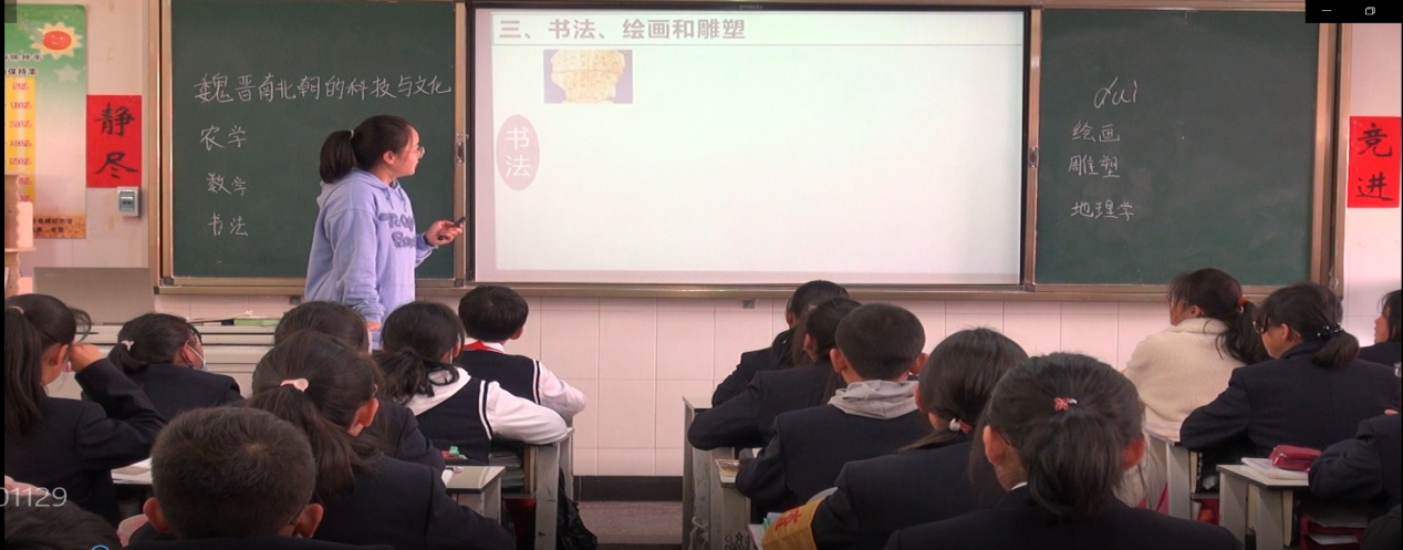 由于要录课,指导老师把七年级的最后一课魏晋南北朝的科技与文化给我录.这也是我在实习期间的最后一课.备好课之后,先拿给老师过目一下,课件通过之后,然后在写教案,写好教案之后,给老师说一下自己的教学思路,在这个过程中老师给了我很多的意见,陪着我一张一张PPT的磨课,在这个过程中我很感激指导老师吗,我很感谢自己能来这里实习,遇到了她.我先在七年级14班上了一遍,星期五的时候再在13班录课.