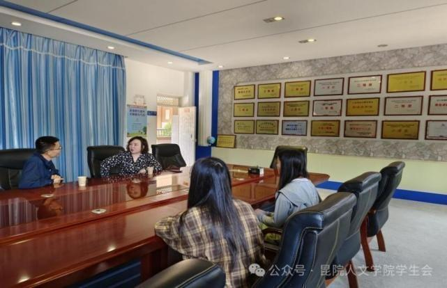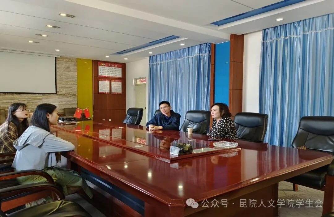 2024年4月8日中午11:30,威廉希尔中国官网石静老师走访了实习点公司昆明锐意外国语中学。在昆明锐意外国语中学一楼会议室和20级汉语言专业1班的实习同学李晗、温璐楠、蒋思男,锐意外国语中学实习对接老师李宁老师进行了交流。