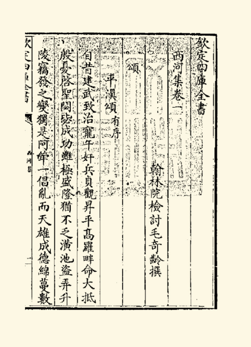 《西河集》书影(文渊阁《四库全书》本)