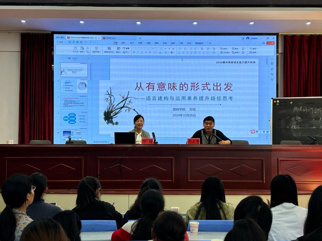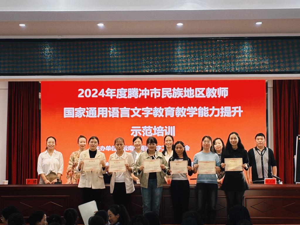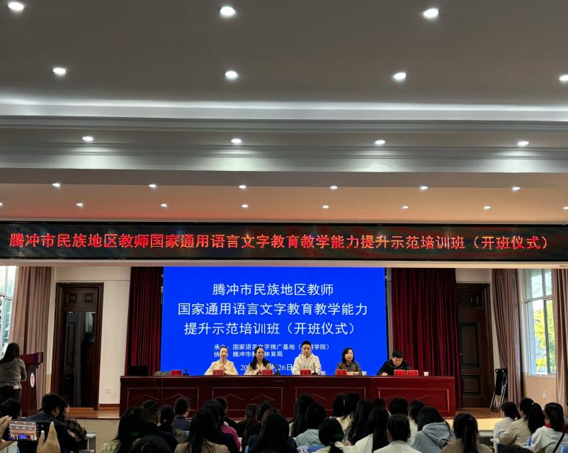 10月26日-27日,公司国家语言文字推广基地教学团队一行5人赴腾冲市,与腾冲市教育体育局共同举办了2024年腾冲市民族地区教师国家通用语言文字公司产品能力提升 示范培训。来自腾冲市中小学和幼儿园的100位教师参加了此次培训。围绕参训学员的实际需求和现有普通话水平,培训设置了“普通话测试达标”、“教师口语能力提升”与“国家通用语公司产品能力提升专题讲座”三个模块,结合学员在日常公司产品中对普通话的实际运用情况,从普通话的规范度、自然度以及有声语言表达艺术的层面,开展了多维度、多模块递进式培训。