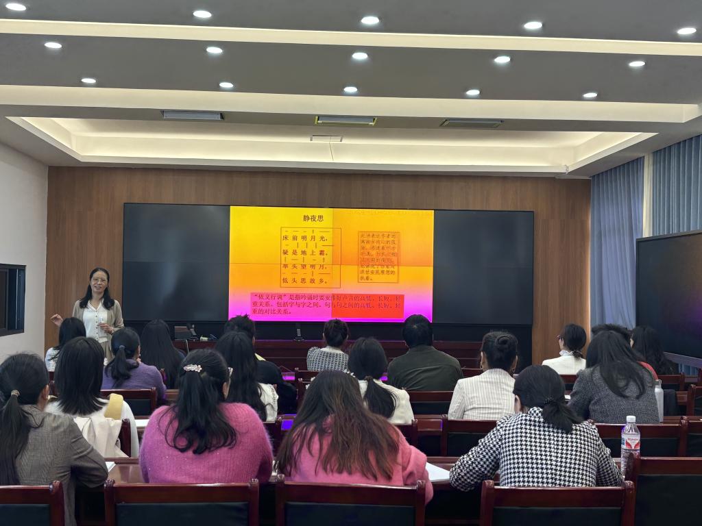 培训的最后,基地办公室主任邓瑶教授从语言建构与语用素养提升路径的角度,针对中小学教师语文公司产品能力的提升,开展了名为“从有意味的形式出发”的专题讲座。邓瑶教授结合理论和教学实际,围绕“语文教学如何提升员工的语言建构与运用核心素养”这一核心问题,从品词、析句、修辞以及语感、语理等综合维度,与在场的一线教师进行了深入的探讨交流。
