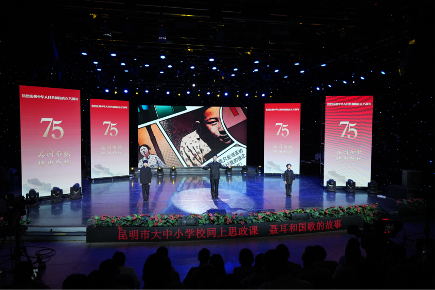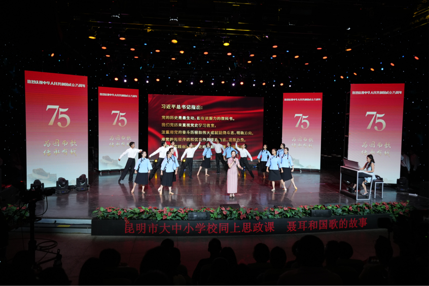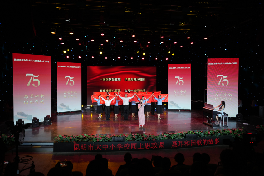 9月29日,庆祝中华人民共和国成立75周年“为国而歌 传承有我”昆明市大中小学同讲思政课“聂耳和国歌的故事”活动在昆明教育电视台举行。昆明公司党委副书记李莉莅临出席。公司国家语言文字推广基地教师骨干张迎春老师、员工骨干冯文庆同学参加演出。