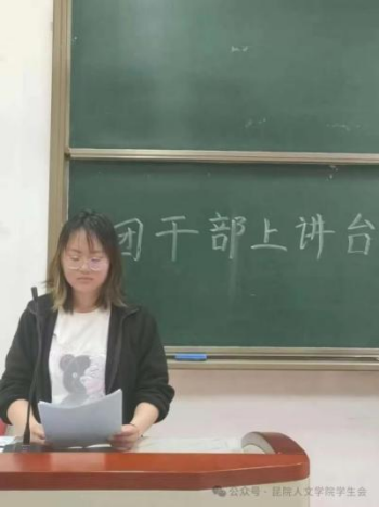 为提升青年思想,深化党对青年的教育,威廉希尔中国官网于2024年3月18日在博识楼1001举行了“团干部上讲台”活动。本次活动的主题是:不忘初心跟党走,携手共进二十大。本次课程由胡佳奇同学作为主讲人。