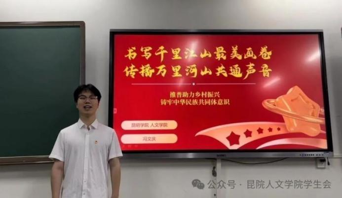 威廉希尔中国官网“青年讲师团”成员冯文庆开展了题为《书写千里江山最美画卷,传播万里河山共通声音》的宣讲。冯文庆同学指出强国必须强语,强语助力强国。广大青年应以“高质量推广普及国家通用语言文字,传承中华优秀语言文化”为己任,挺膺担当“推普助力乡村振兴”的青春使命。以语为媒,以文为介,用青年的声音讲好推普故事,谱写好国家通用语言文字发展事业的云南篇章!为加快强国建设,助力全面建设社会主义现代化国家、全面推进中华民族伟大复兴贡献青春力量!