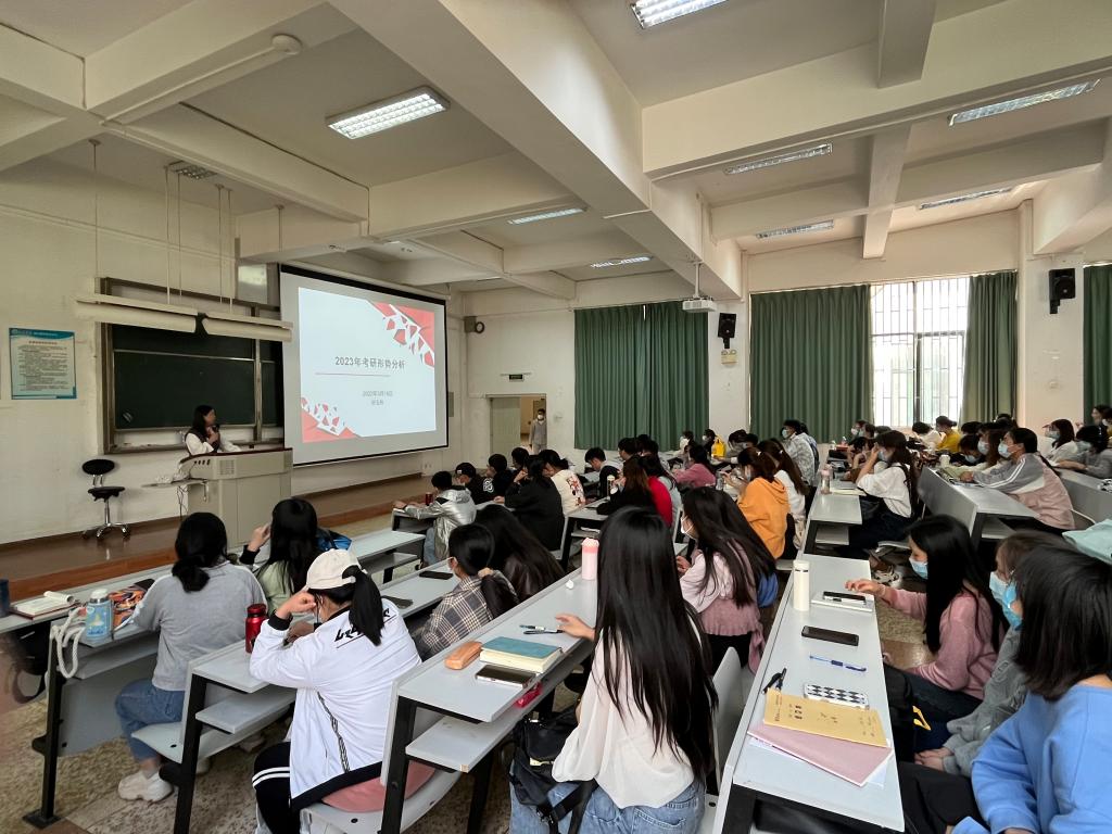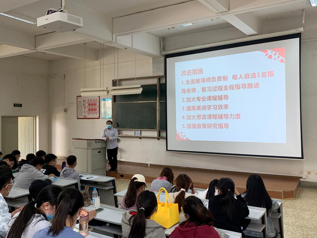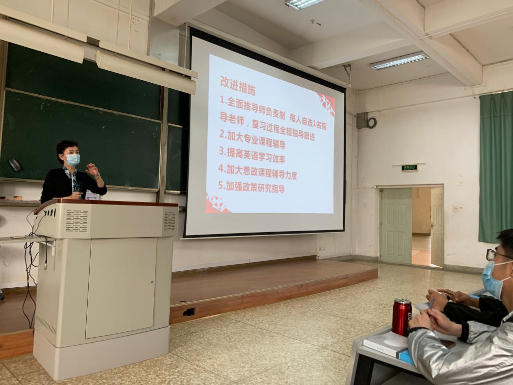 田玉玲副经理为同学分析了近几年的考研形势。考研人数连年增长,今年的国家线也大幅提升。通过对2018级的考研成绩分析,田老师给同学们提供了直观的参考。同学们要合理分析趋势,合理评估自身实际情况,谨慎选择,切忌好高骛远,而追悔莫及。