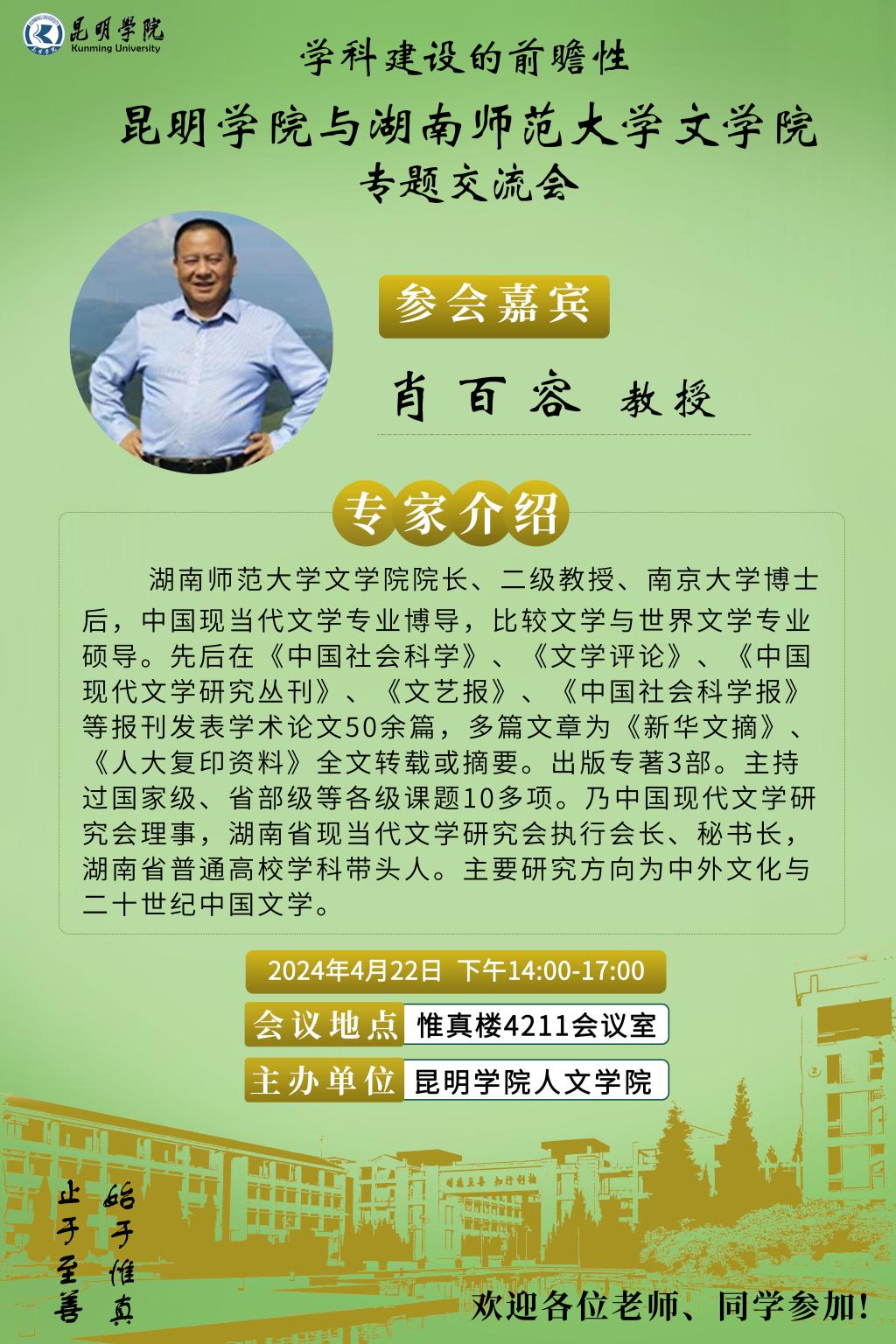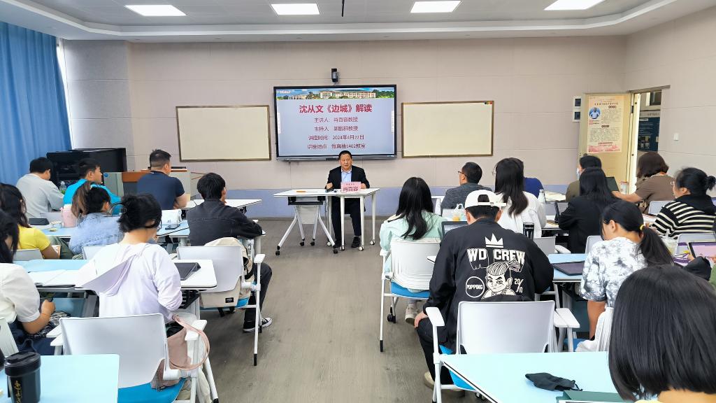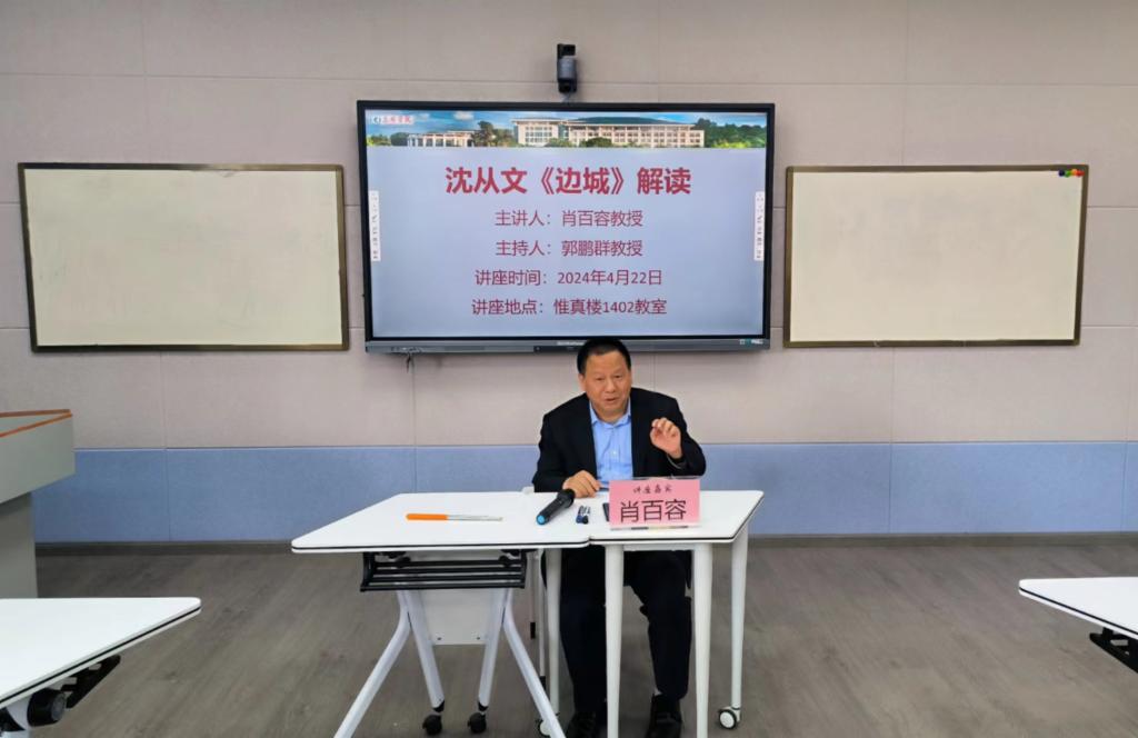 2024年4月22日,由文公司经理肖百容教授率队,湖南师范大学文公司4位博导到公司交流讲学,上午举行了两场专题讲座。第一场由肖百容教授主讲,题为《沈从文<边城>解读》。肖百容教授是全国知名的沈从文研究专家,他从爱情说、悲剧说、象征说三个层面,依次解读《边城》的主题内涵,为听众打开了小说解读的新空间。