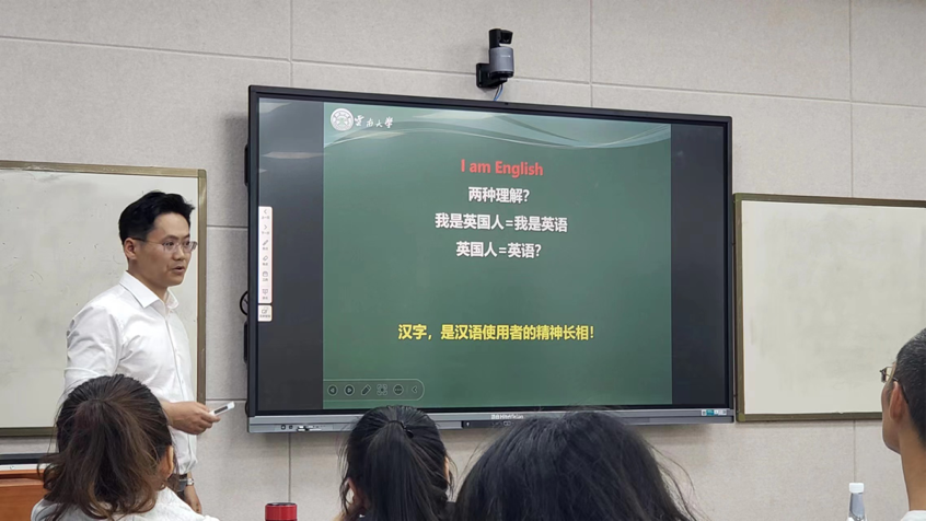 刘教授在讲座中深入探讨了语言、思维和文化的密切关系,并通过汉语的特点,中国的诗词和书画,进一步展示了中国人的思维是“天人合一”的思维,是辩证的二元对立统一的思维,是整体性思维。同时,在讲解过程中,刘教授带领我们发现问题,为今后的论文写作提供了很多有价值的论题,比如:论汉语“一字多音”发生的语言学依据、论汉语四字格重复义产生的语言学依据、论英语独立主格出现的语言学基础、论英语客体思维表达的句式分析。