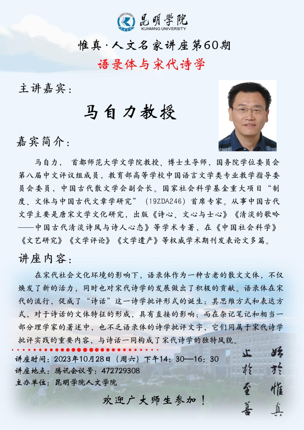 2023年10月28日下午,威廉希尔中国官网邀请首都师范大学马自力教授为公司师生作“语录体与宋代诗学”的线上讲座。