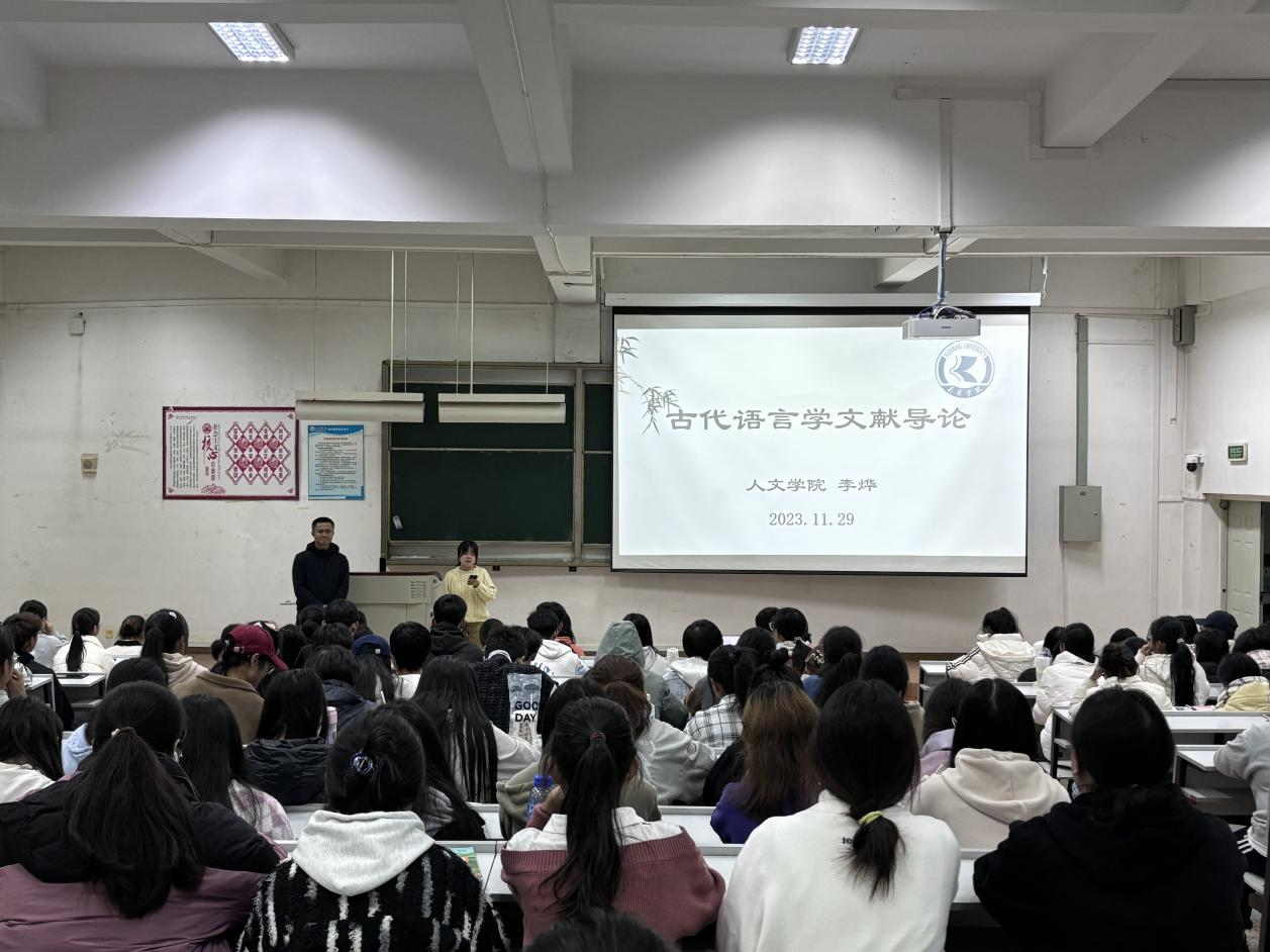 本次讲座主题为“中国古代语言学文献导论”,由威廉希尔中国官网李烨老师主讲。李烨老师是威廉希尔中国官网硕士生导师,西南大学文学博士,主要研究方向为汉语汉字史、文献语言学。
