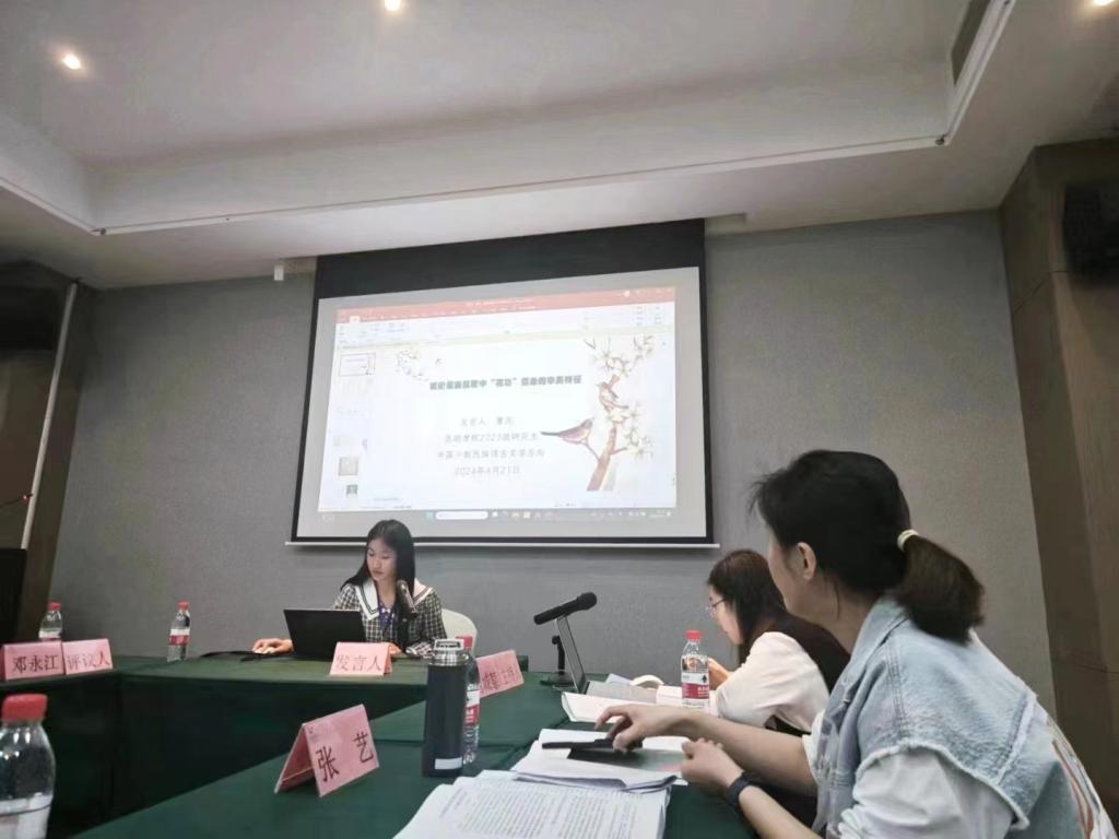 4月20日下午及4月21日全天,此次论坛一共举行了五场硕博论坛,公司2023级中国少数民族语言文学方向的研究生曹芮同学参与了第三组“少数民族歌谣研究”的讨论,分享了她的论文《试论傣族民歌中“花鸟”意象的审美特征》,探讨了傣族民歌中的生态美学价值。
