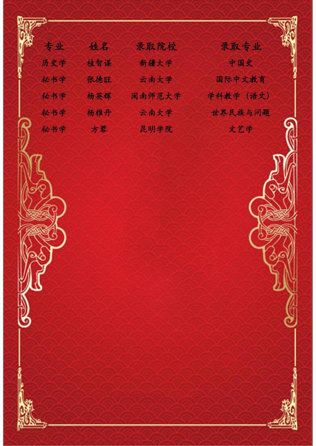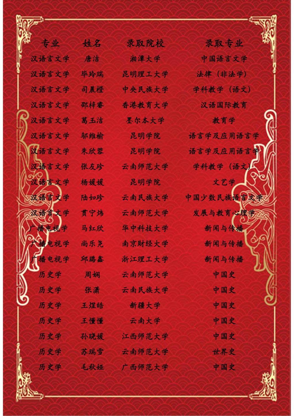 截至2024年5月9日,威廉希尔中国官网2024届考研学子共计45人被华中科技大学、中央民族大学、对外经济贸易大学、云南大学、香港教育大学、墨尔本大学等多所国内外知名院校录取。经统计,录取员工中有8人被“双一流”院校录取,占录取人数的16%。让我们向成功升学的同学们表示衷心祝贺,向躬耕教坛的老师们道一声谢谢!