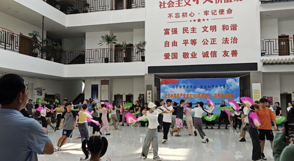除了感受非遗文化,实践团还来到了建水县的文化馆,观看了建水县彝族花灯团的四季春晚的舞蹈排练,领略到了少数民族舞蹈与汉族舞蹈歌曲结合创新的魅力。