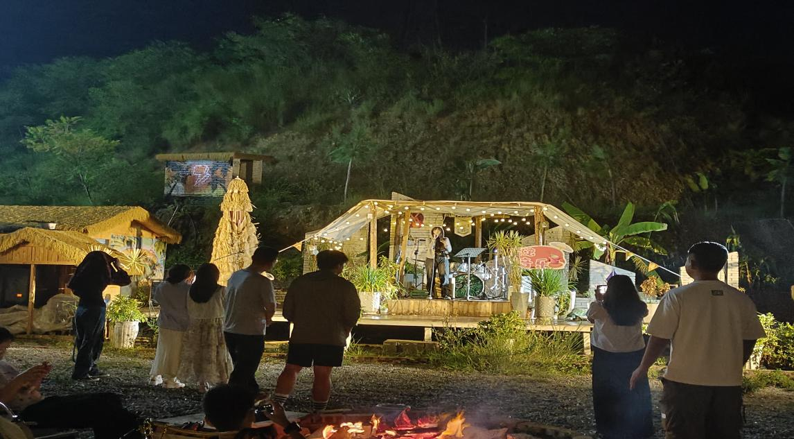 次日,实践团队来到了迤萨村公路音乐营地进行了民族团结的相关宣讲,最后与热情的当地人民一起围着篝火打跳,完满结束了整个实践活动。