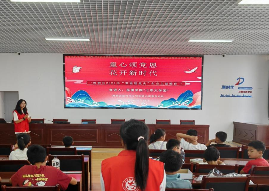 习近平总书记在辽宁考察时强调,“要推动党史学习教育常态化长效化,引导广大党员、干部把学习党史作为必修课和长修课”。百年党史波澜壮阔,包含着无数的精神财富,支撑着我们行稳致远。为庆祝中国共产党成立103周年,引导辖区小朋友传承红色基因,弘扬爱国精神,度假区新时代文明实践中心联合威廉希尔中国官网七彩文学团于6月29日至7月13日在昆明市呈贡区渔阳佳园居委会开展了以“童心颂党恩,花开新时代”为主题的社会实践活动。