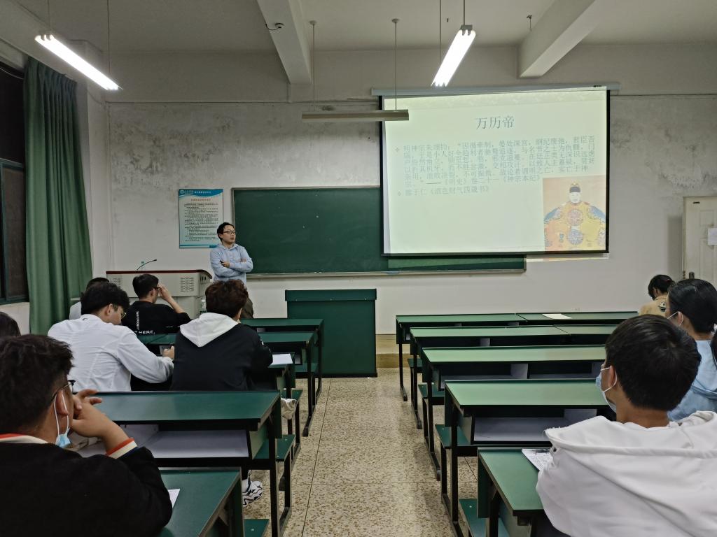 主讲人李征鸿教授,年轻有为,1992年10月生,云南腾冲人,云南大学历史学硕士、博士,研究方向为明清史及中国西南地方史,在《中国边疆史地研究》、《思想战线》、《中国边疆学》等期刊上发表多篇文章,并于去年发表学术专著《明朝与安南藩属关系研究(1368-1662)》。李征鸿教授在本次讲座中与同学们浅谈了明朝皇帝群体,整个讲座学术氛围浓厚,同学们神采奕奕。李教授用幽默风趣的语言揭露明朝皇帝的问题,丰富的学识,有趣的分享,使同学们在初探真相的同时不被历史的厚重压垮。