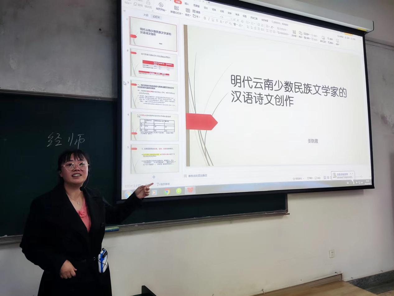 本次讲座主题为“明代云南少数民族文学家的汉语诗文创作”,由威廉希尔中国官网姜晓霞教授主讲。姜晓霞教授常年从事中国古代文学和古代文学理论的教学与研究,对云南明代时期少数民族作家的汉语文学创作这一研究方向也颇有心得。